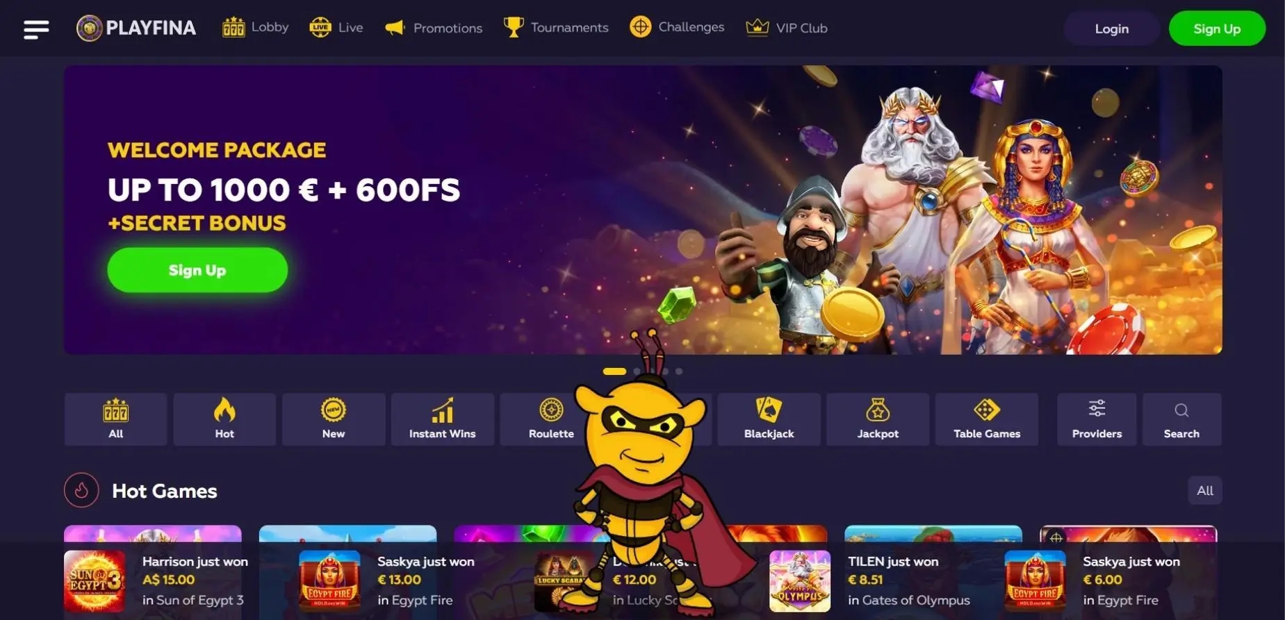 More than 11,000 slots, all varieties of blackjack, dozens of roulette games, craps, video poker, and other games are available to you at Playfina casino online Experience the thrill of success with PlayFina's no deposit bonuses and win big without spending a dime!! Play the Best Online Casino Games at Playfina ✓ Try Slots, Blackjack, Roulette, Craps and Video Poker with Huge Bonuses. Playfina Casino How to Start Up to 1000€ + 200 FS + Secret Bonus... Playfina Casino - Bonus Codes – 50 Free Spins!